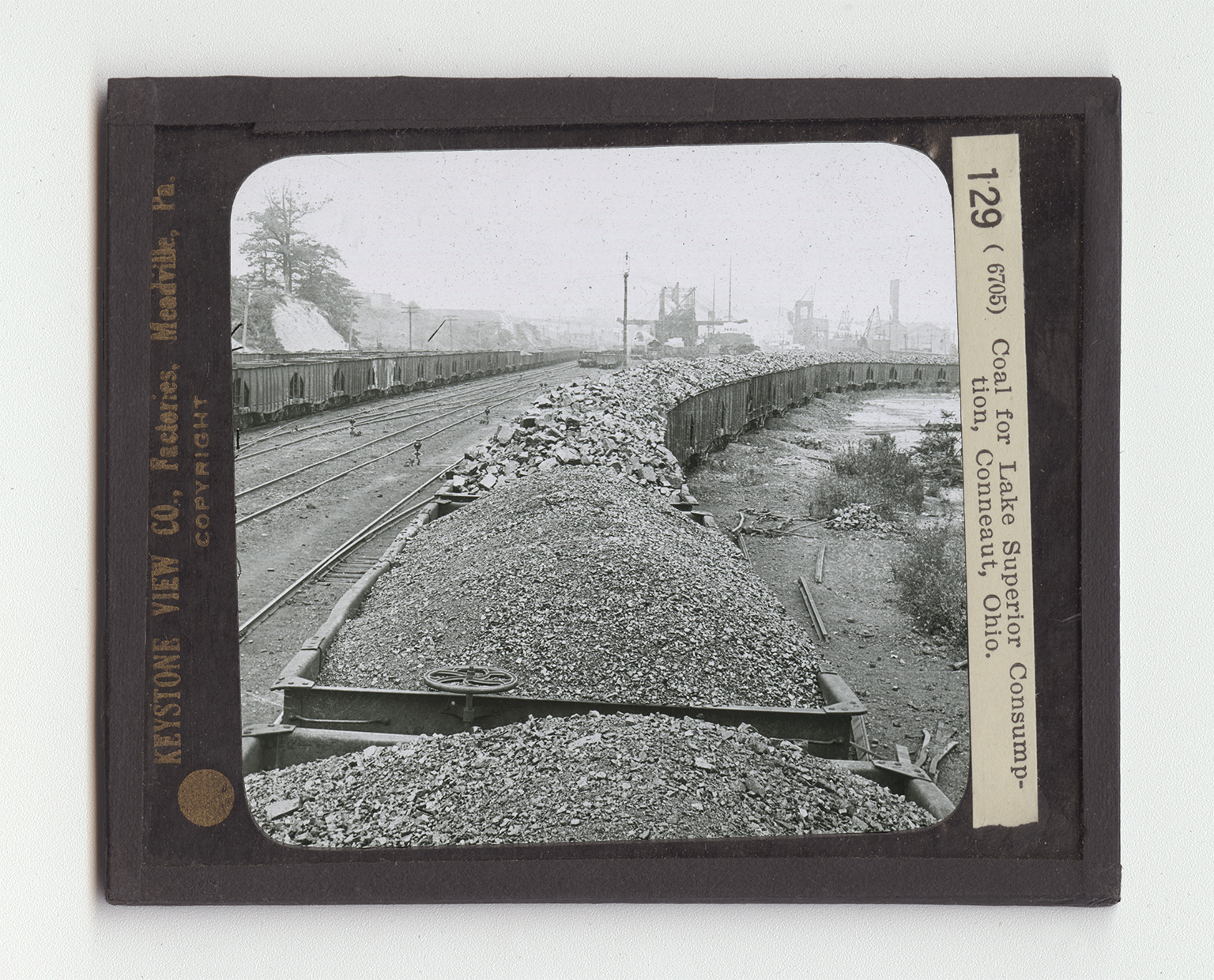 boats had to return empty. This was a great waste. Now the shipping is carried forward both ways. Iron and steel refineries have been built in the Superior District. The vessels that bring iron ore east, carry back heavy cargoes of coal to buy used in the Superior iron district. This trainload of coal that you see will be put on board one of these ships and unloaded at Duluth or Superior, not far distant from the iron ore area. This makes the ports along the southern shore of Lake Erie the natural exchange place of coal and iron. Among these important ports are Buffalo, Erie, Cleveland, Toledo, Ashtabula, Lorain, and Conneaut, the city here shown. Locate each of these cities on your map. Trace a shipment of coal from Conneaut to Duluth. Through what waters does this pass?