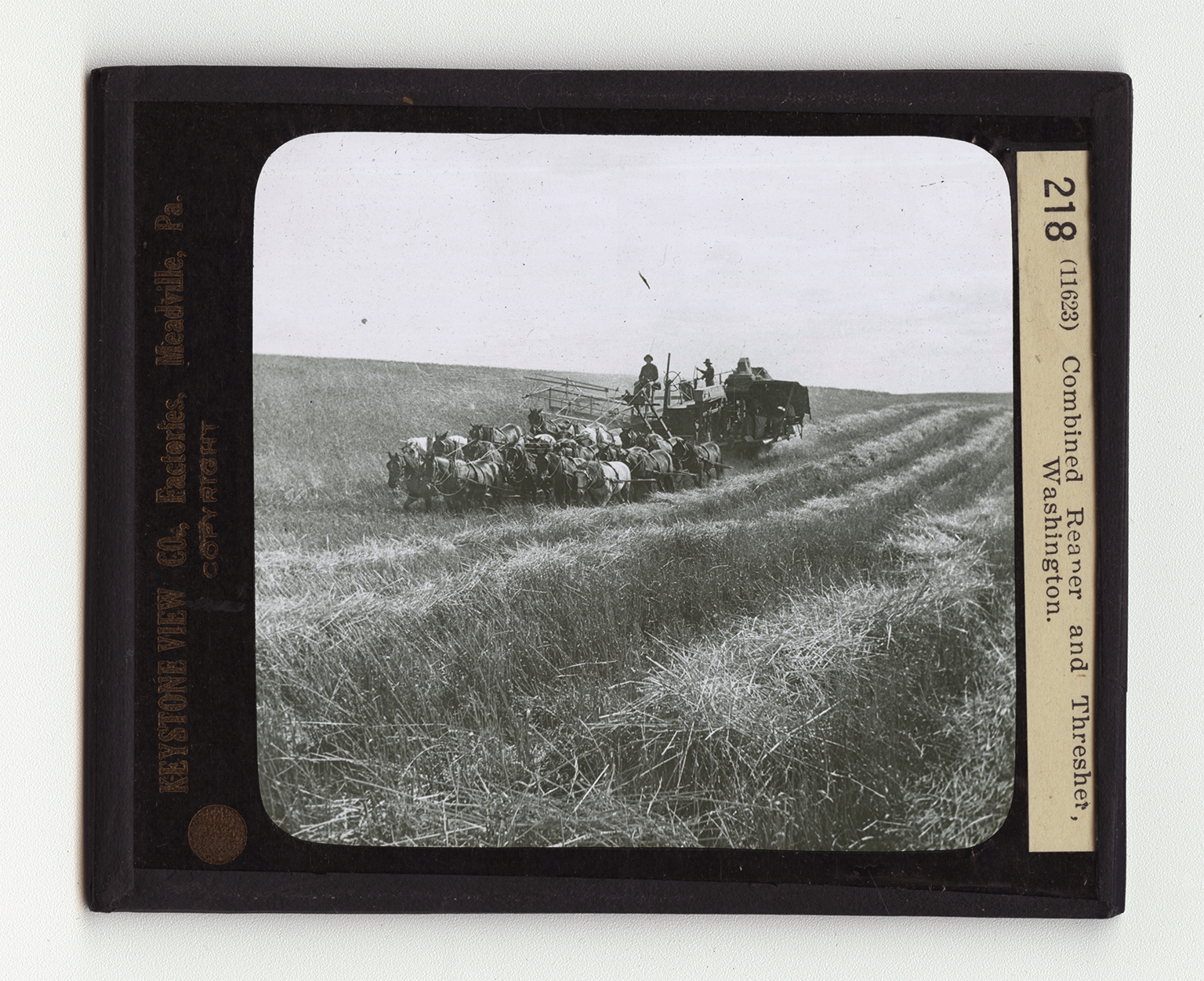 In northern California and in the western parts of Oregon and Washington are the great wheat fields in which this type of machine is used. It is a combined reaper and thresher. As the machine moves across the field, it cuts the heads off the straw, removes the wheat from the heads and sacks the grain. There are at least two conditions necessary before such a large machine can be used with profit. In the first place, the fields must be very large so that frequent turning is unnecessary. In the second place, the climate must be such that the grain will dry out in the hulls. You recall that in most wheat farming, the bundles are set in shocks and allowed to "cure" several days or weeks so the grains will become dry enough to be removed from the close-fitting hulls. In our Pacific states the climate during the harvesting season is so dry that the wheat cures before cutting.