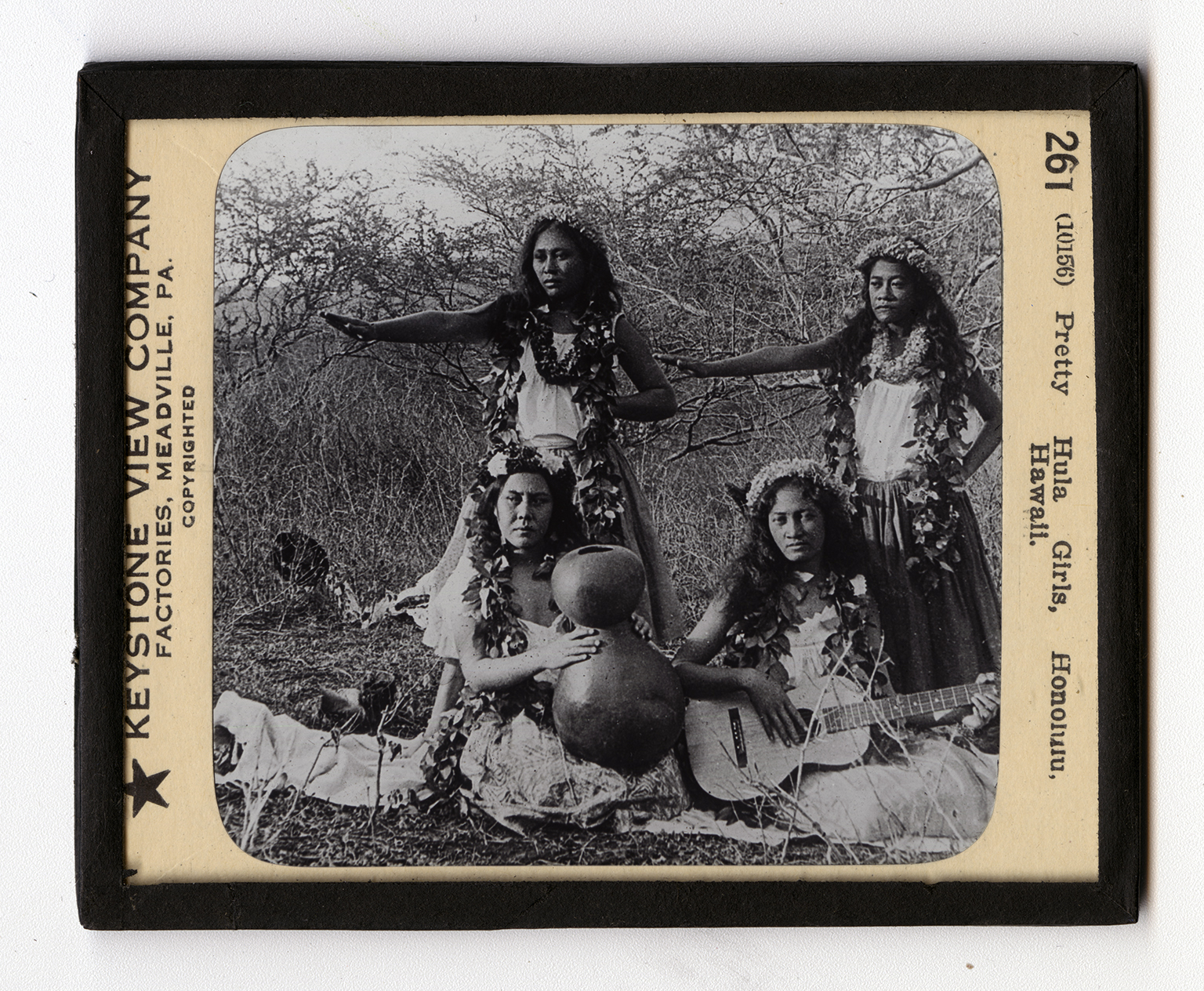 The group consists of 12 islands, 8 of which are inhabited. The largest of these is Hawaii, from which the group receives its name. They are located in the Pacific about 2,000 miles southwest of San Francisco and 4,700 miles east of Manila. They are important not only because of their production fo sugar and tropical fruits, but also because they afford an important naval base in the Pacific. The group is often spoken of as the key to the Pacific. The scene here shown is near Honolulu, in the crater of Punch Bowl Mountain. This is an extinct, volcano. Honolulu is the capital of the territory of Hawaii, and is the chief city. It has a population of about 53,000, or is about the size of Springfield, Illinois. It is on the island of Oahu. It is the largest city and the chief port of the islands. Most of the Pacific steamship lines call at this port.