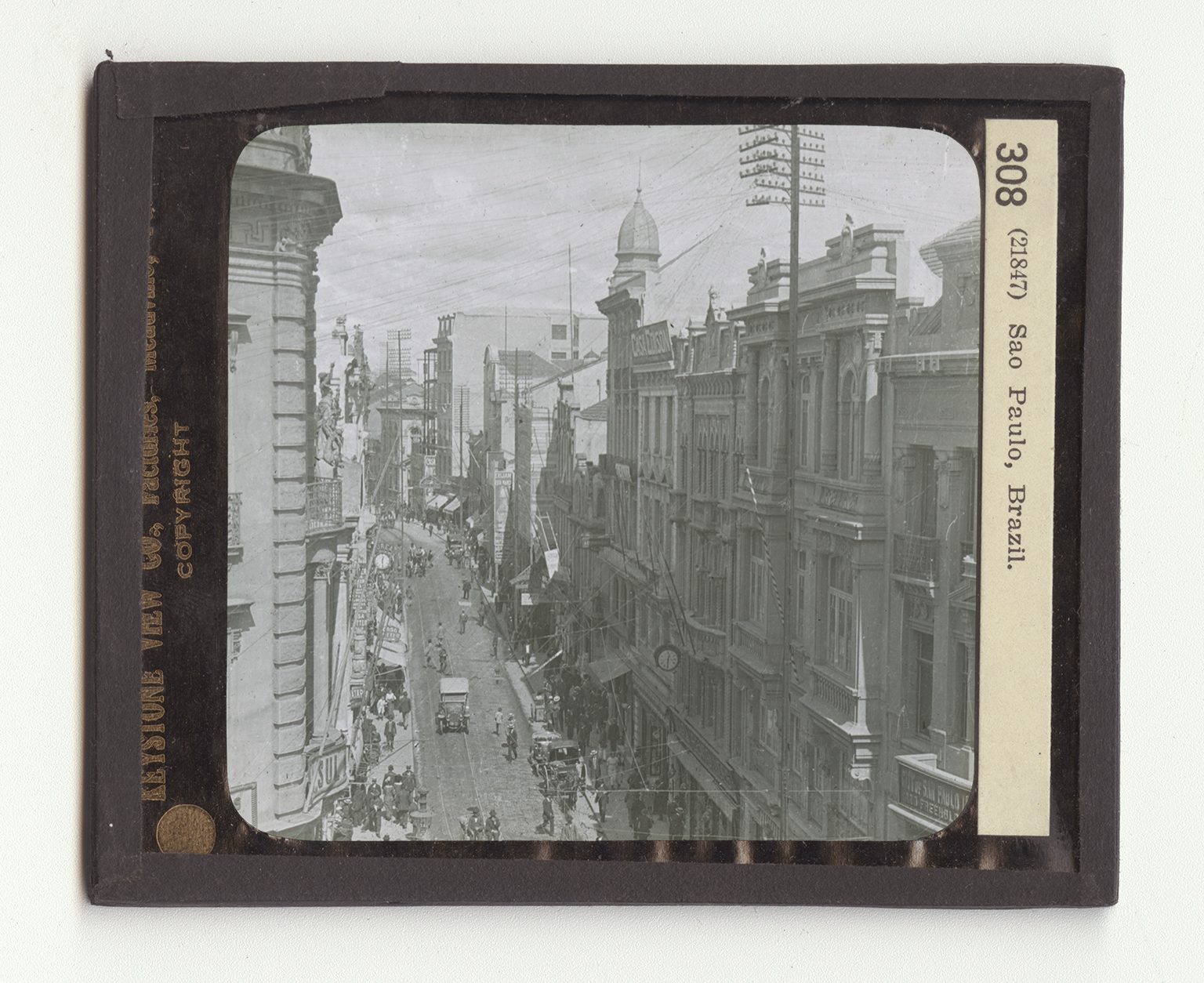 Just south of Rio de Janeiro near the coast of Brazil you can find on your map of South America the city of Sao Paulo. Brazil is made up of 20 states, and Sao Paulo is one of these. The city of Sao Paulo is the capital of the state of the same name. It was founded and named by the Portuguese, and its name means "St. Paul". Sao Paulo is in the heart of the greatest coffee growing district in the world. Rich coffee planters live in its beautiful suburbs. Banks and business houses of foreign countries may be found here. It is also a railroad center. You can board the train at Sao Paulo and go to Santos, the nearest port, 28 miles southwest, or to the Parana River 250 miles inland, or southward a third of the distance to Uruguay. It is a thriving city of 450,000 people. The street pictured here is one of the most interesting. It is in the business section, which