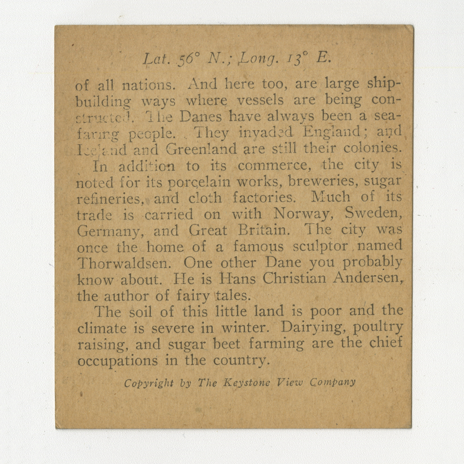 of all nations. And here too, are large ship-building ways where vessels are being constructed. The Danes have always been a sea-faming people. They invaded England; and Iceland and Greenland are still their colonies. In addition to its commerce, the city is noted for its porcelain works, breweries, sugar refineries, and cloth factories. Much of its trade is carried on with Norway, Sweden, Germany, and Great Britain. The city was once the home of a famous sculptor named Thorwaldsen. One other Dane you probably know about. He is Hans Christian Andersen, the author of fairy tales. The soil of this little land is poor and the climate is severe in winter. Darying, poultry raising, and sugar beet farming and the chief occupations in the country.