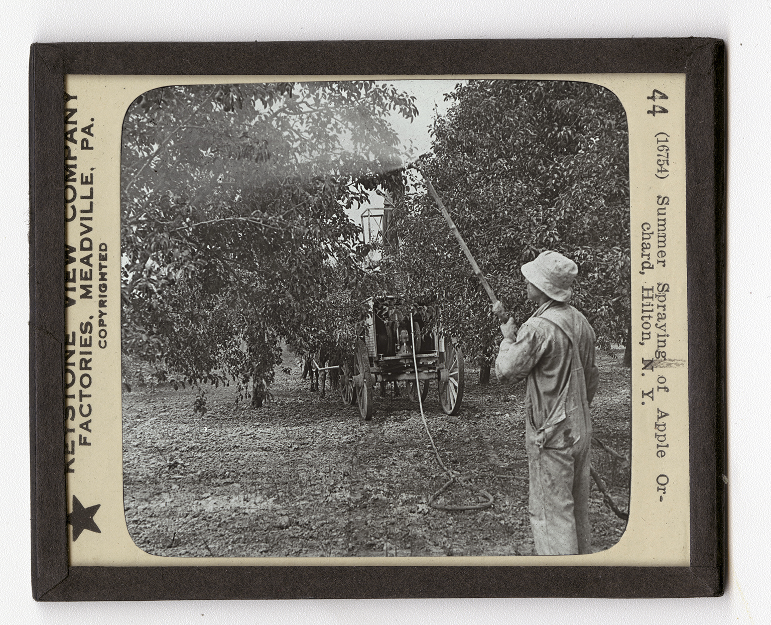 when grown will bear the fruit, not of the kind the seedling bore, but the kind that the tree bore from which the graft was made. Grafts are also made on twigs. The young orchards are carefully tended. This consists largely in fertilizing or cultivating the soil, trimming the trees, and keeping them thoroughly sprayed. It is one of these spraying processes that is shown here. Spraying is a prevention, not a cure. Most of the diseases of plants are "catching." That is, the insects travel from the infected plants to the ones free from disease. The time to spray is before there are any signs of disease. In the case of apples, the trees are sprayed to prevent ripe-rot, cale, canker, leaf-spot, etc. Many kinds of chemicals are used. Powerful sprays, such as this one, make it easy to spray large orchards in a short while.