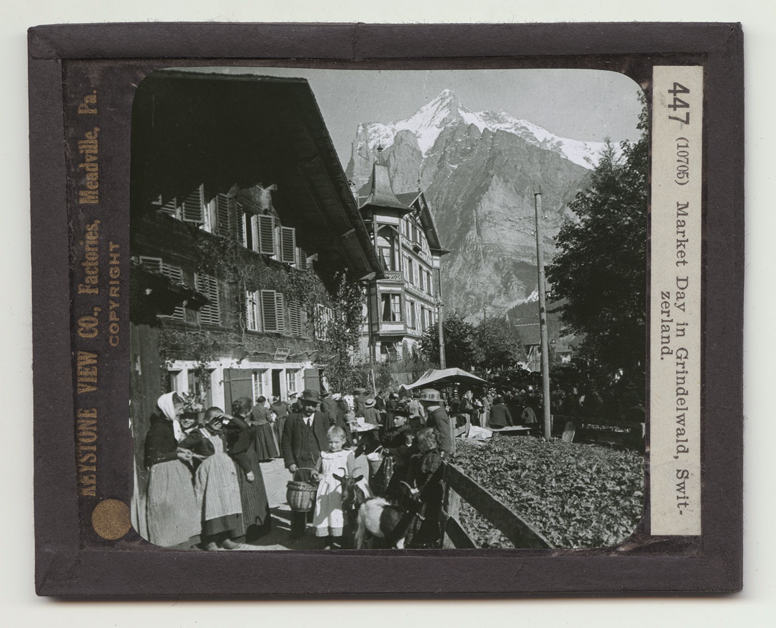The little village of Grindelwald is in the valley of the same name. Over it stand guard some of the mighty peaks of the Alps. One of these stands out sharply beyond the village. The village itself is 3500 feet above sea level. It is market day in Grindelwald. The Swiss from the little farms up and down the valley have gathered to trade and to visit with their neighbors. They have brough to market vegetables from their fields, and butter and cheese from their dairies. A good price is paid for these by the hotels, for tourists are plentiful here. The valley is noted for its dairying. Cattle, goats, and sheep graze on the uplands. The shep and goats are driven to great heights on the mountain sides to crop the fresh grass. The Swiss are expert makers of butter and cheese. In this valley the forefathers of these people have lived for generations, and have driven their