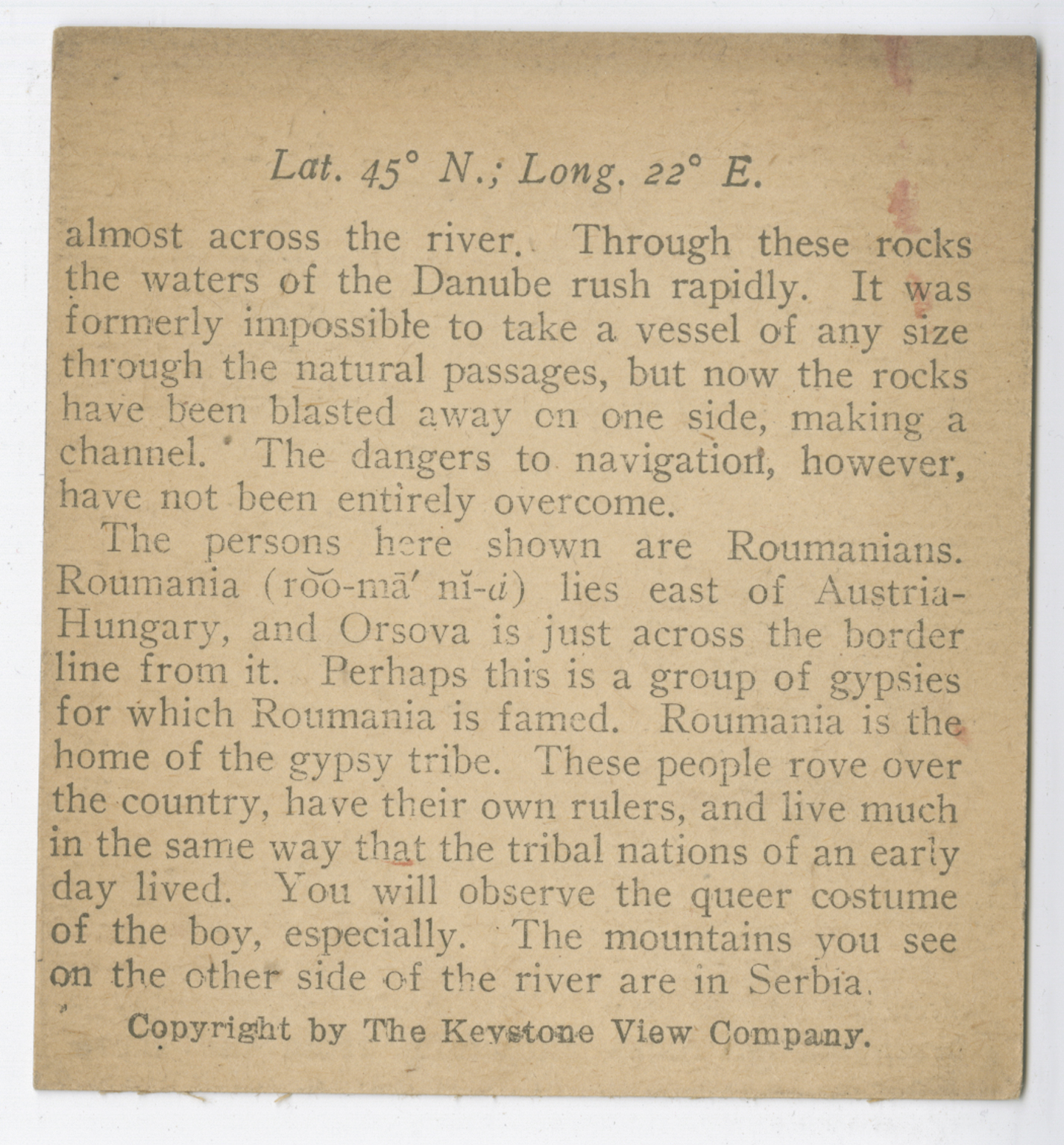 almost across the river. Through these rocks the waters of the Danube rush rapidly. It was formerly impossible to take a vessel of any size through the natural passages, but now the rocks have been blasted away on one side, making a channel. The dangers to navigation, however, have not been entirely overcome. The persons here shown are Roumanians. Roumania lies east of Austria-Hungary, and Orsova is just across the border line from it. Perhaps this is a group of gypsies for which Roumania is famed. Roumania is the home of the gypsy trible. These people rove over the country, have their own rulers, and live much in the same way that the tribal nations of an early day lived. You will observe the queer costume of the boy, especially. The mountains you see on the other side of the river are in Serbia.