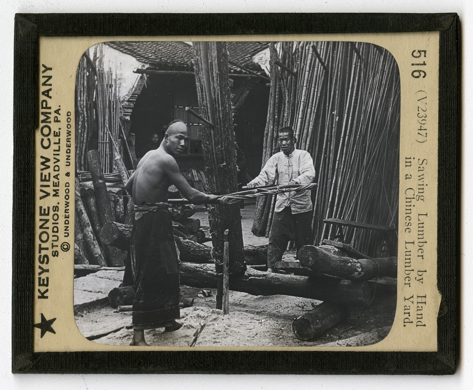 Sawing Lumber by Hand in a Chinese Lumber Yard.
