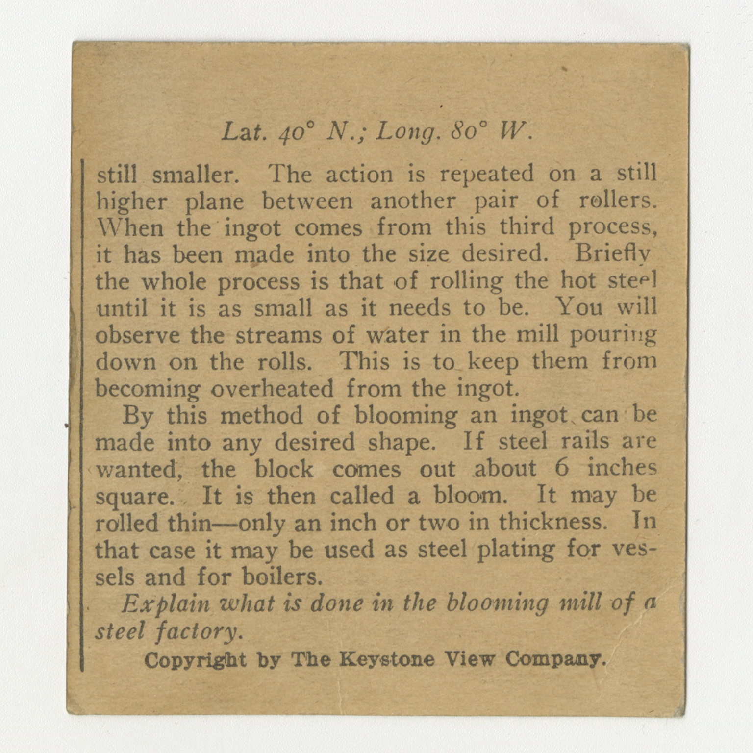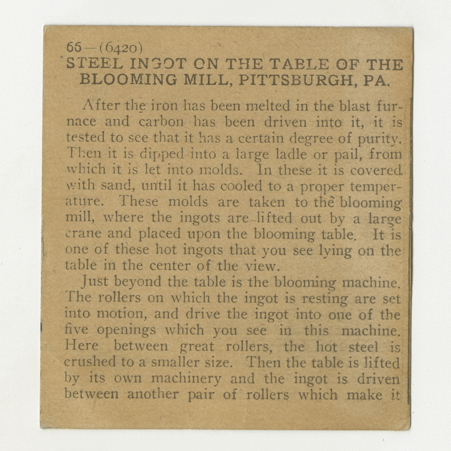 Steel Ingot on the "Table" of the "Blooming Mill," Pittsburgh, Pa.